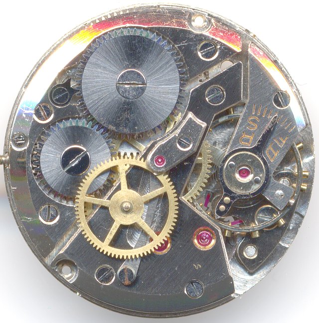 Für die Zentralsekundenindikation besitzt das Kleinbodenrad auf der Brückenoberseite ein Übertragungsrad, welches das Sekundentrieb, das unter einem Kloben mit Lagerstein sitzt, antreibt. Dieser Lagerstein ist der 16. Stein dieses Werks, da hier, wie bei alten Werken üblich, das Minutenrad noch nicht steingelagert ist.