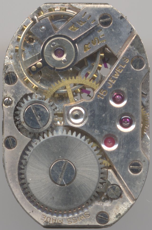 Das AS 1051 ist ein Damenuhrenformwerk, das noch die älteren, etwas größeren Maße von 5 3/4 x 8 3/4 Linien besitzt. Anhand der Größe und der fehlenden Stoßsicherung dürfte es in den 40er Jahren produziert worden sein.