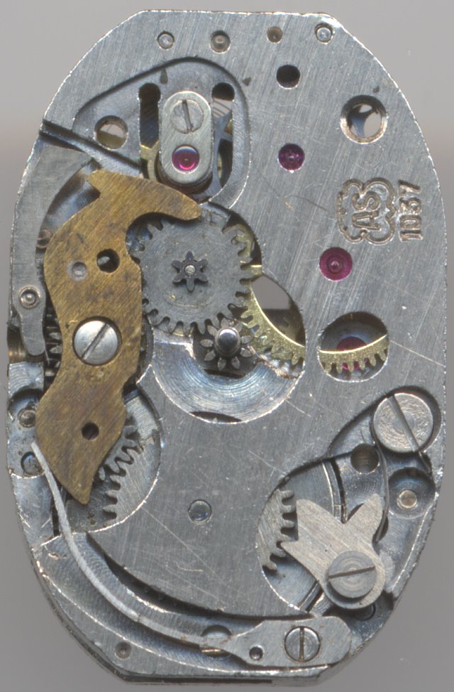 Interessanterweise spricht die zifferblattseitige Punze noch vom AS 1037, die Brückenform mit der geschwungenen Einfräsung ist aber dem AS 1101 zuzuordnen.