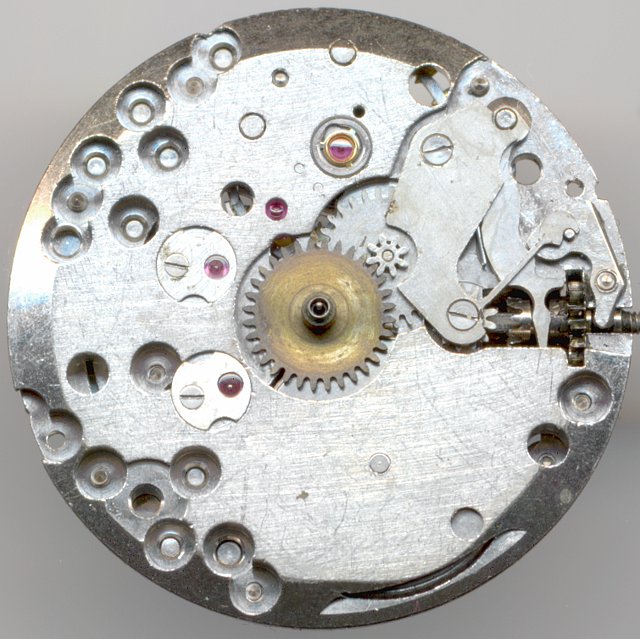 Das Räderwerk ist mit zentral unter einen eigenen Brücke gelagertem Minutenrad auf dem seinerzeitigen Stand der Technik.