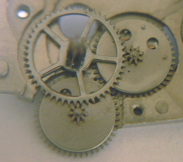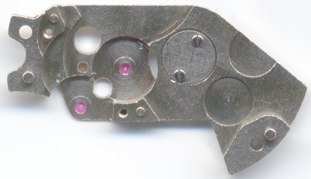 Die beiden Klinkenräder sind werksseitig steingelagert, allerdings nur werksseitig. Das Reduktionsrad läuft werksseitig nur in einem gehärteten Lager - hier gibt es tatsächlich einen Unterschied zu den anderen Kaliberfamilien, bei denen auch hier Lagersteine (und sogar Decksteine) verwendet werden.