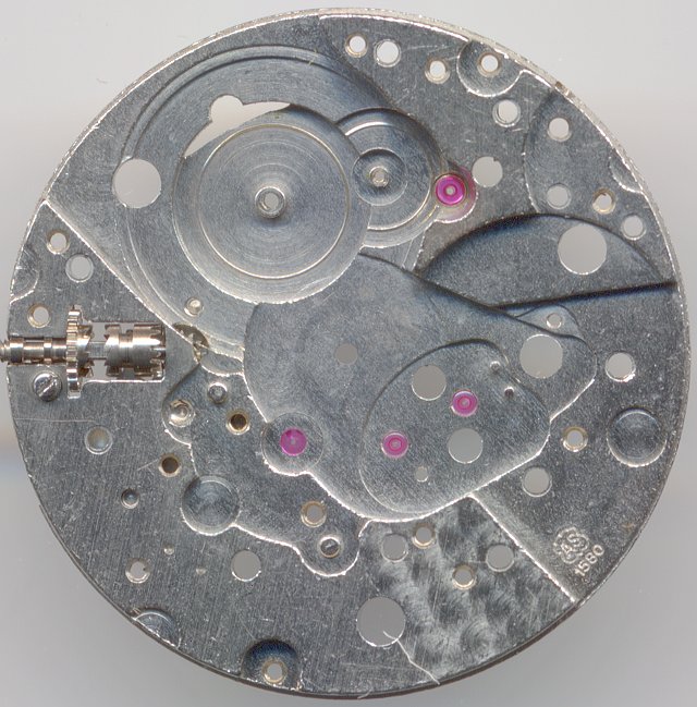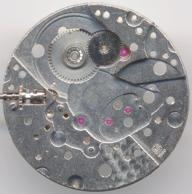 Das Räderwerk des AS 1580 entspricht einem normalen Handaufzugswerk, das an geeigneter Stelle um den Automaticmechanismus erweitert wurde. Hierfür wurde der notwendige Platz freigelassen.