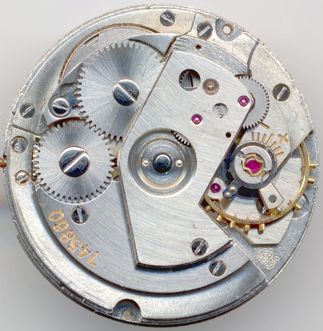 Die Konstruktion des Werks ist für damalige Verhältnisse ziemlich modern: Das Zentralsekundenrad liegt im Kraftfluß und wird somit direkt angetrieben.