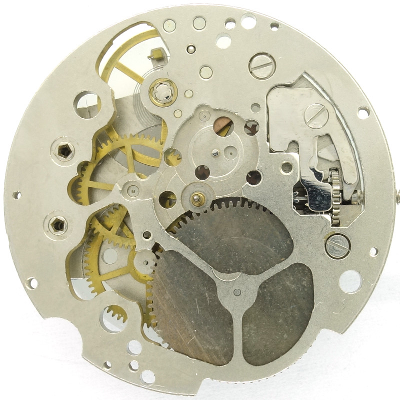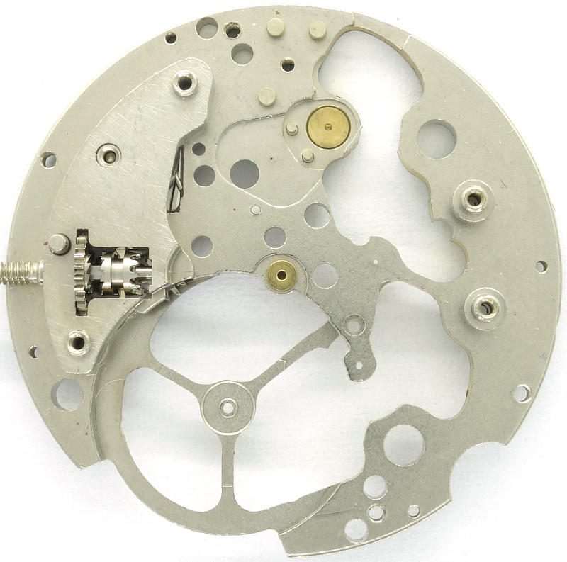 Hier ist die Basisausführung vorgestellt, die nur eine Anzeige von Stunden, Minuten und Sekunden bietet, und deren Grundplatine den kleineren Durchmesser, 12 1/2 Linien, besitzt.