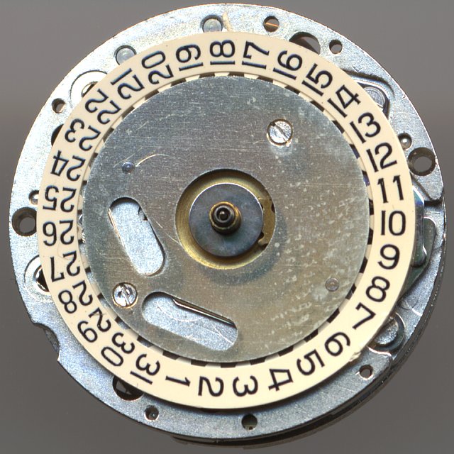 Der Datumsmechanismus ist ungewöhnlich aufwändig, mit Zahnrädern, die unterschiedlich tiefe Eingriffe haben, mit beweglichen Hebeln und Federn und benötigt deswegen nur rund 45 Minuten für den Schaltvorgang. Auch eine Halbschnellverstellung per Zurückdrehen auf 22:30 Uhr ist möglich.