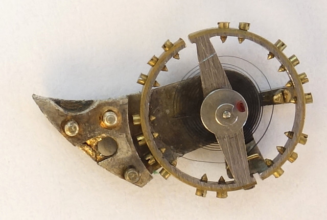 Auch wenn bei dem vorgestellten Exemplar die Winkelhebelfeder gebrochen ist, so kann man doch ihrer charakteristische Form bei der Fixierung des Wechselrads erkennen.
