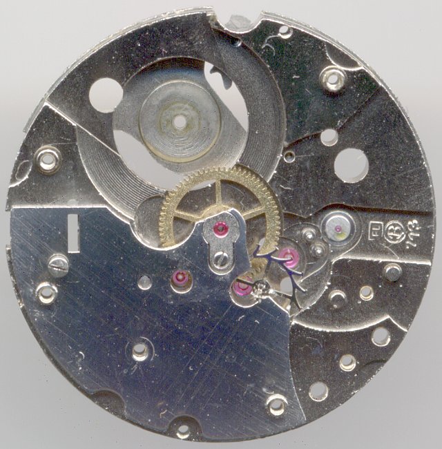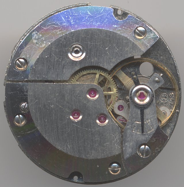 Richtig groß ist bei diesem Werk nur die zweischenklige Ringunruh. Zusammen mit dem sehr langen Rückerzeiger sorgt sie für einen stabilen und recht genauen Gang. Ob die oben leicht elliptisch ausgeführten Ankersteine ebenfalls für mehr Genauigkeit sorgen, ist nicht bekannt.