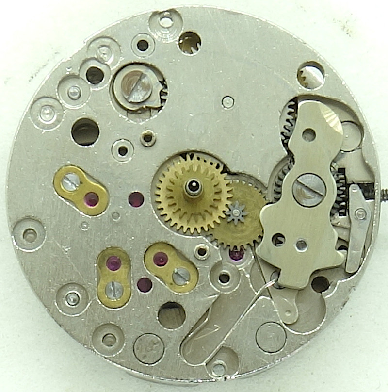 Schon die Grundplatine läßt erkennen, dass wir es hier mit einem (relativ) hochwertigen Werk zu tun haben: Alle Lager, sogar das des Minutenrads, sind mit Steinen ausgestattet.