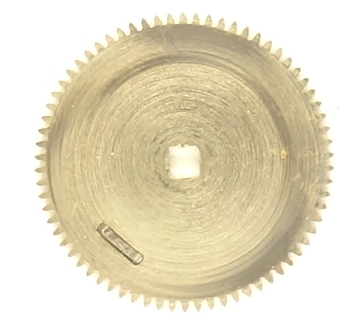 Dieses äußere Wechselrad treibt dann noch ein Untersetzungsrad (oben bei 12 Uhr zu sehen) an, bevor dieses dann in den Eingriff mit dem unteren Sperrrad gelangt.