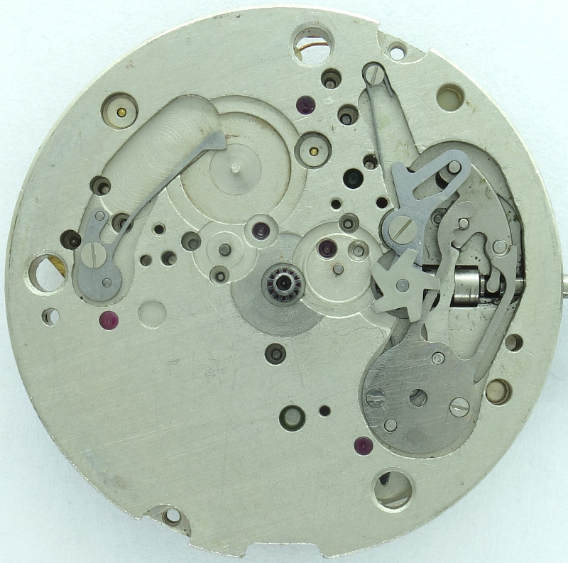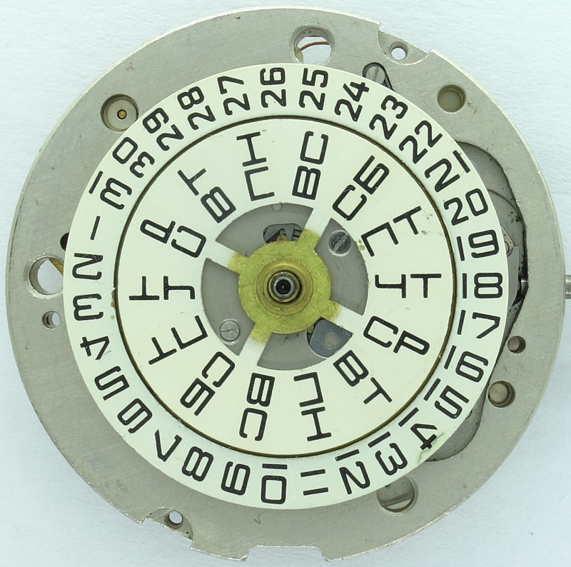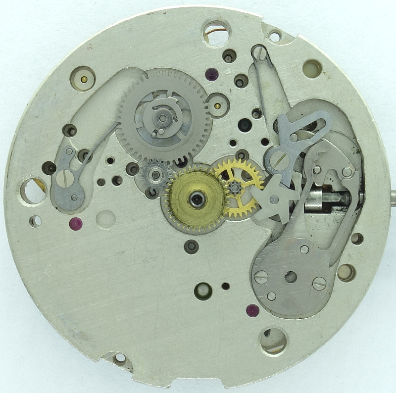 Zifferblattseitig wurde sehr viel von Raketa übernommen (oder andersherum?), man findet dort den Kupplungsaufzug mit identischer Winkelhebelfeder und auch einen Kalendermechanismus, der bis kleine Details identisch ist.