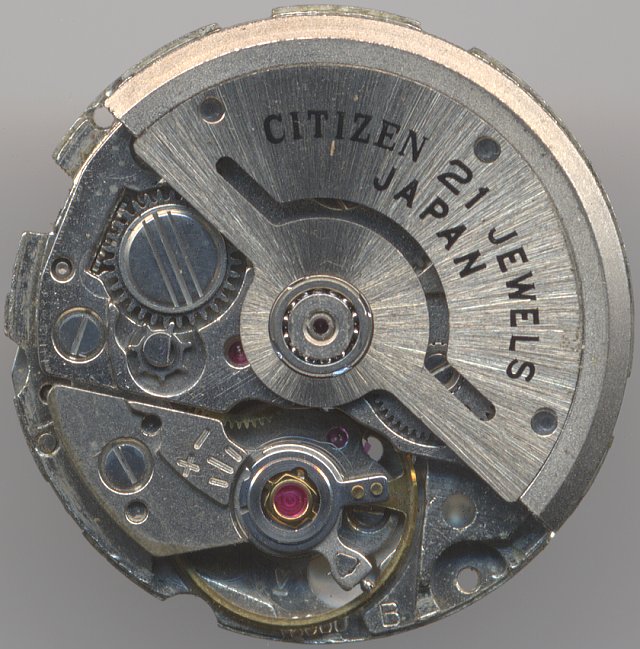 Mitte der 60er Jahre brachte Citizen das Kaliber 6000, ein Werk im Medium-Format auf den Markt. Es besitzt einen beidseitig wirksamen Aufzug mit kugelgelagertem Rotor und ein federloses Gesperr für das Kronrad. Die große Glucydur-Ringunruh läuft in der bewährten hauseigenen Parachoc-Stoßsicherung.