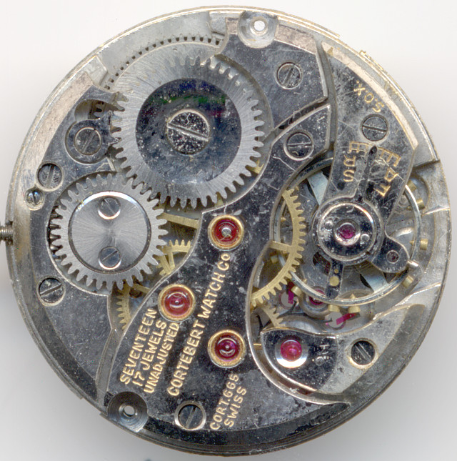 Aus einer Zeit, in der noch aus dem Vollen geschöpft werden konnte, stammt das hier gezeigte Cortebert 665, ein 10 1/2-liniges Ankerwerk mit dezentraler Sekunde. Zeitlich dürfte es in die 40er Jahre einzuordnen sein.