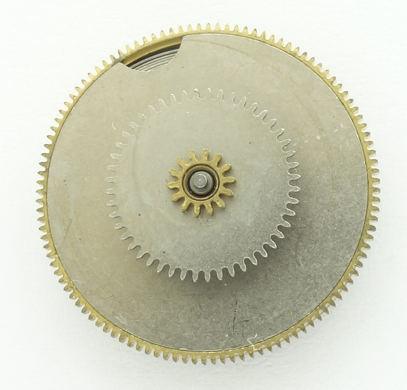 Die beiden Zahnräder befinden sich auf einer Rutschkupplung des Federhauses.