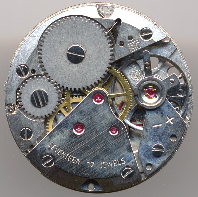Das DuRoWe-Kaliber 7410/2 ist ein gängiges 10 1/2 liniges Handaufzugswerk mit 17 Steinen, das dem gewohnten Standardaufbau folgt.