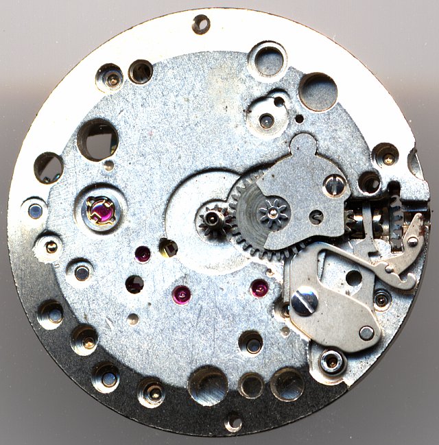 Die Zentralsekunde liegt im direkten Kraftfluß und das Minutenrad ist noch mittig gelagert.