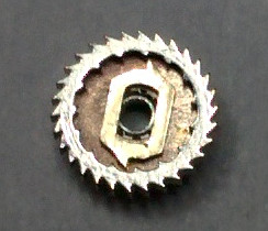 Die Ausführng des Datumsmechanismus ist wieder eine ziemlich geniale Konstruktion, die aus ganzen sechs Teilen besteht, einer Deckplatte, einer Feder, zwei Hebeln, einem Zahnrad und einem Schaltnocken. Und man mag es kaum glauben, die Montage ist sehr einfach, wenn man ihn, wie auf den Bild gezeigt, verkehrtherum liegend vormontiert.