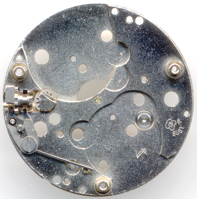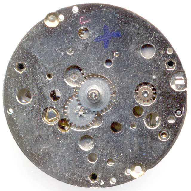 Ein weiterer Unterschied zum Vorgängerwerk ist, daß unter der Unruh und unter dem Anker zwei Aussparungen fehlen.