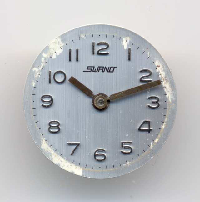 Anders als bei echten Roskopf-Werken gibt es hier noch ein Wechselrad, das das Stundenrohr antreibt.