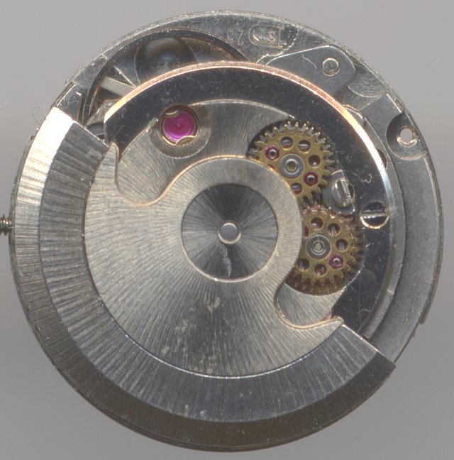 Man erkennt aber auch im Vergleich zu Vorgängerkalibern, wie dem ETA 2365, daß hier schon deutlich rationeller gefertigt wurde. Die “Sperrklinke” des Aufzugs ist nur mehr ein häßliches Drahtgebilde und die Schraubenunruh mußte einer einfacheren, aber scheller schwingenden Ringunruh weichen.