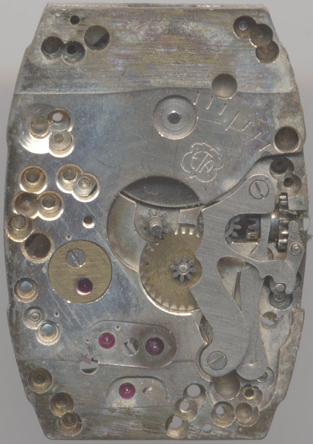 Auch dieses alte ETA-Werk kommt leider ohne genaue Kaliberbezeichnung daher, müßte aber ein Kaliber 735 sein.