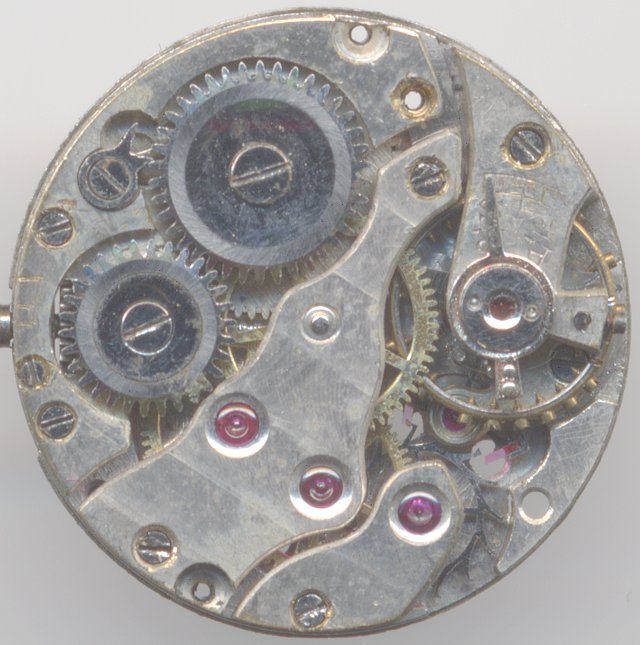 Zifferblattseitig gibt es keine großartigen Überraschungen. Dieses Werk verwendet einen Kupplungsaufzug und die nicht stoßgesicherte Unruh besitzt natürlich ein Decksteinlager.