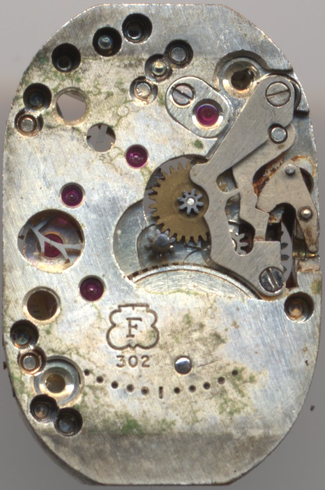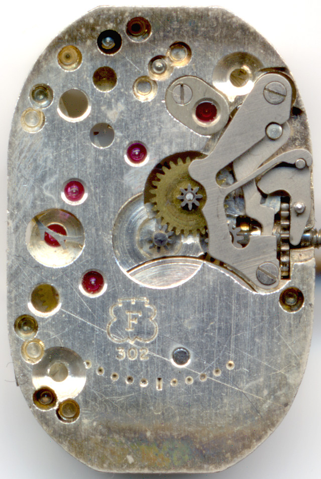 Das Felsa 302 ist eines der typischen größeren Damenuhren-Formwerke, das in grob in den 40er Jahren produziert worden sein dürfte.
