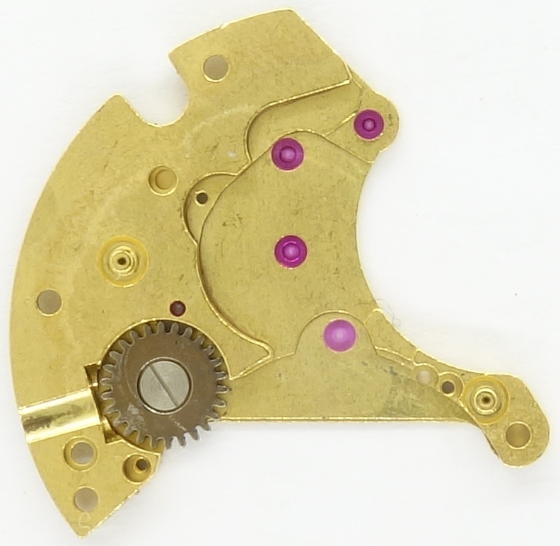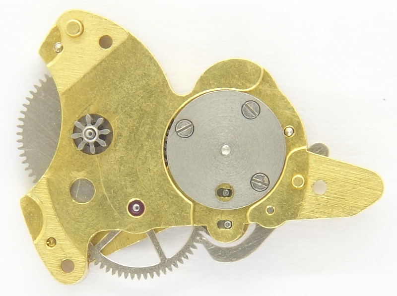 Das Automaticmodul besteht aus einem Wippenwechsler, einem Übertragungsrad, auf das die gefederte Sperrklinke einwirkt, und dem Übertragungsrad, welches in den Eingriff mit dem Kronrad kommt.