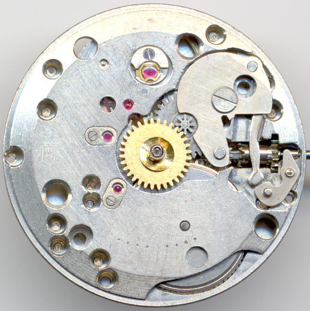 Das Räderwerk entspricht ebenfalls dem Standard der 50er Jahre: Direkt angetriebenes Minutenrad, darüber Kleinboden- und Zentralsekundenrad und schlußendlich das Ankerrad.