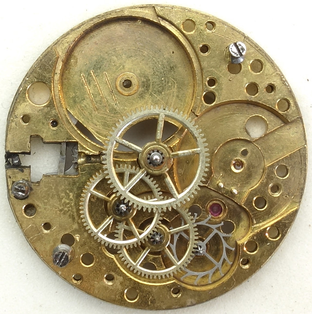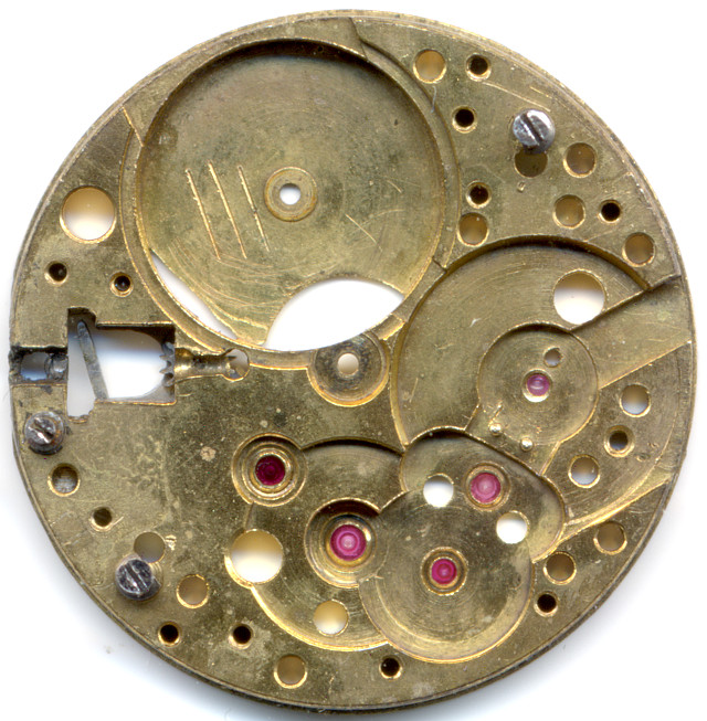 Eine kleine Besonderheit bei diesem Werk ist, dass das Kronrad zwei Verzahnungen besitzt, einmal den normalen äußeren Zahnkranz und einmal eine Verzahnung auf der Unterseite, die mit dem Kupplungsrad des Aufzugs in Verbindung steht.