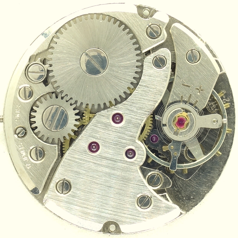 Auch der restliche Räderwerksaufbau folgt dem gewohnten Standard der damaligen Zeit, auch wenn in den 1960er Jahren schon Werke mit indirekt geführter Minutenanzeige en vogue waren.