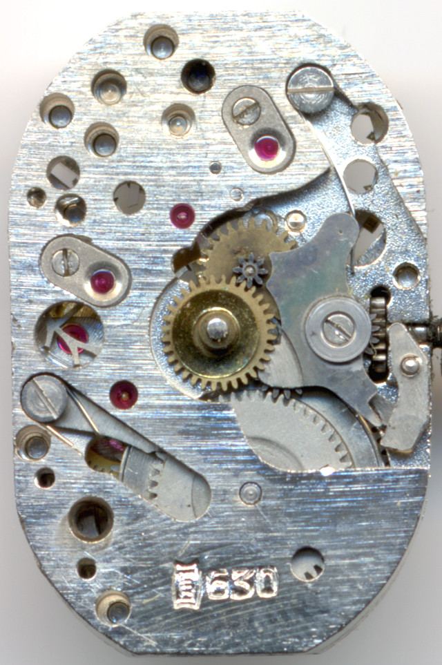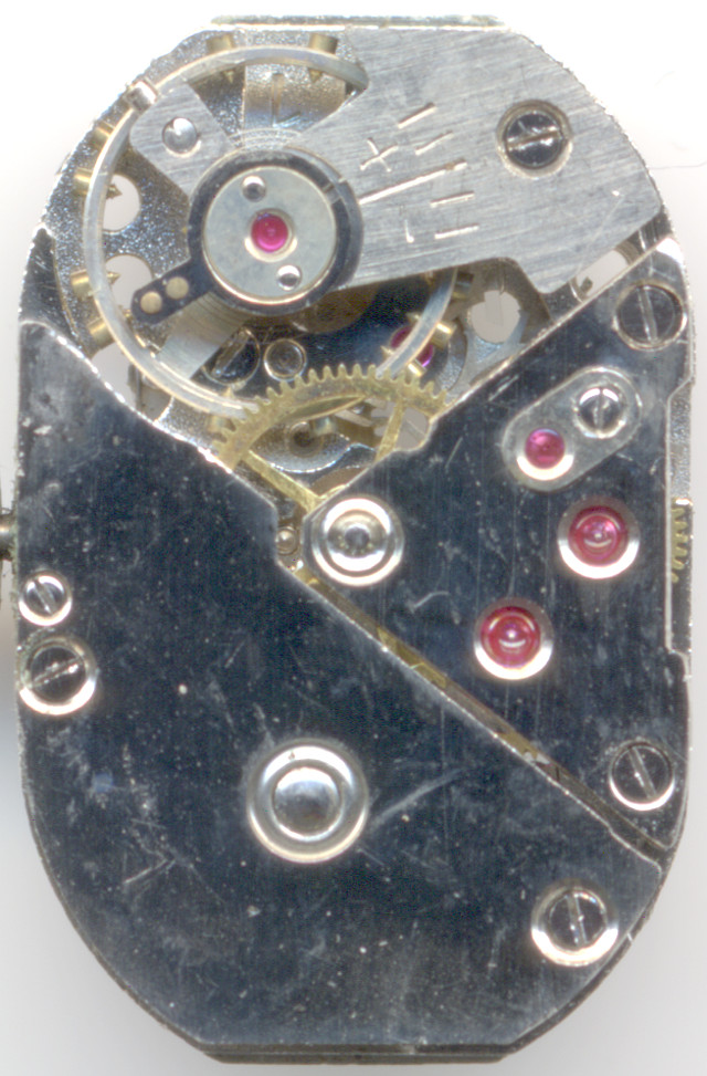 Es ist ein typisches 5 1/4-liniges Damenuhren-Formwerk mit Palettenanker-Hemmung und 17 Steinen.