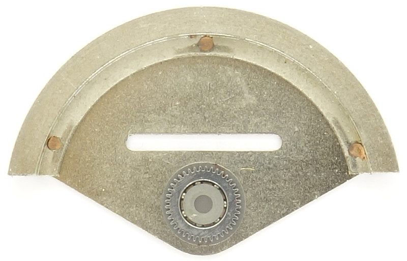 Das Wechselrad des Zeigerwerks dreht sich pro Tag fünfmal. Das Datums-Sternschaltrad auf 12 Uhr ist daher so ausgeführt, dass es über den Tag verteilt fünf Schritte a 1/5 Umdrehung macht. Der Finger auf der Oberseite greift in den Datumsring ein und schaltet ihn halbschnell vor. Beim Rückdrehen der Zeit rutscht der Finger durch - eine einfache aber effiziente Art der halbschnellen Datumskorrekur.