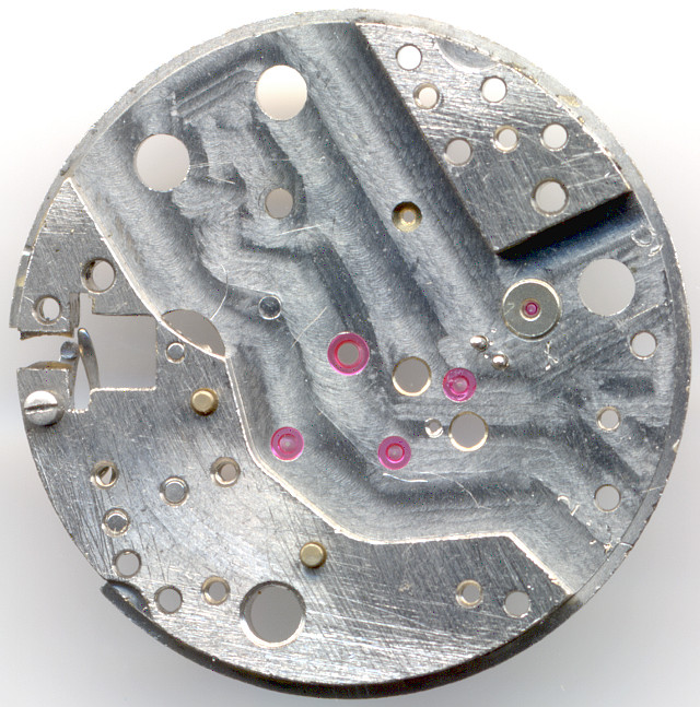 Die Decksteine dieses Werks sind in funktionslos, da sie lediglich die weit tiefer liegenden Lagersteine abdecken. Als Ölreservoir sind sie jedenfalls untauglich, aber immerhin kommt dieses doch recht einfache Automaticwerk auf dieselbe Steinzahl, wie die der Konkurrenz, nämlich auf 25 Steine.