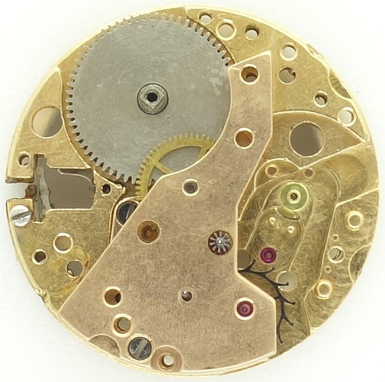 Die Identifikation dieses goldfarbigen, 8 3/4 linigen Handaufzugswerk war nicht einfach, es dürfte sich aller Wahrscheinlichkeit nach um Judex 46 SC handeln, später wurde es wohl in Sefea 53 umbenannt. Es steht in direkter Verwandtschaft zum 10 1/2 linigen Kaliber Judex 127B.