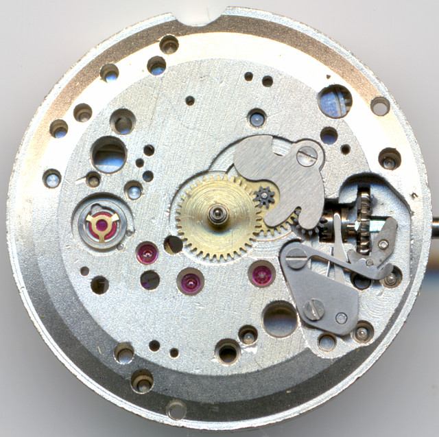 Der Werksaufbau ist zeitgemäß klassisch: Der Palettenanker reguliert das Hemmungsrad, dessen werksseitiges Lager mit einem Deckstein versehen ist. Es folgen das direkt angetriebene Zentralsekundenrad, Kleinbodenrad und das zentral gelegene Minutenrad, welches mit dem Federhaus in Eingriff steht.