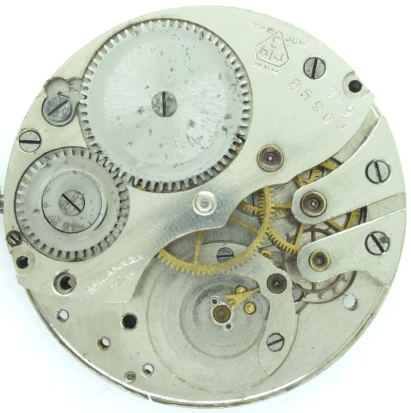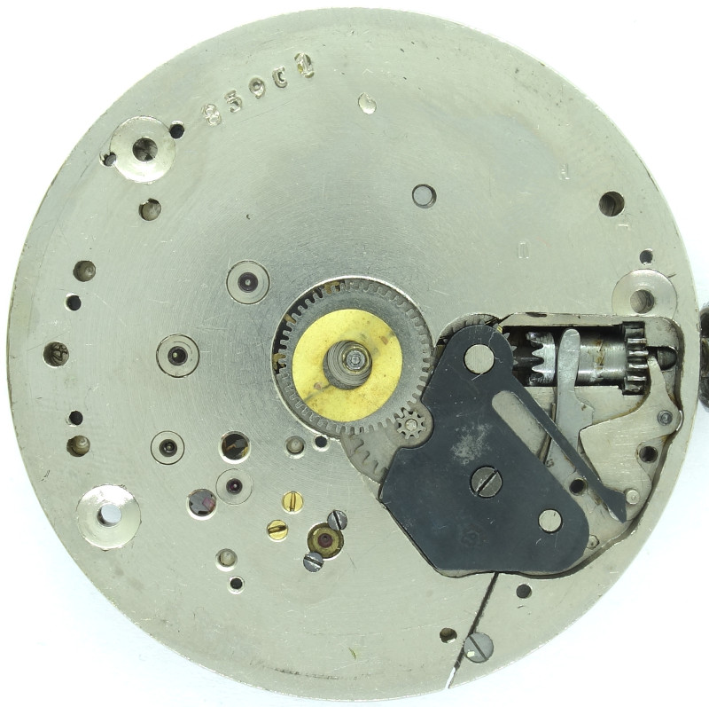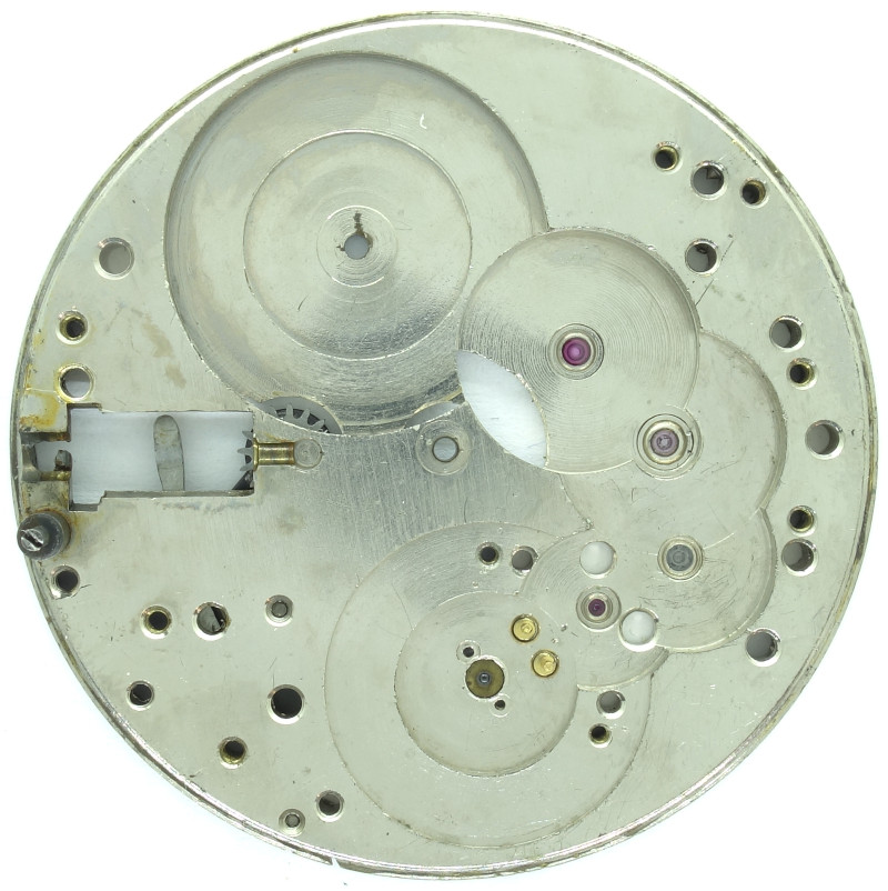 Auf der Zifferblattseite dieses unglaublich laut tickenden Werks sieht man einen zwar einfach, aber doch funktional gut ausgeführten Kupplungsaufzug.