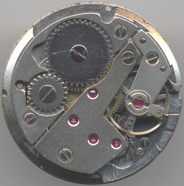 Der Werkaufbau ist unspektakuär: Die dreischenklige Rinunruh deren Spirale an einem beweglichen Spiralklötzchenträger montiert ist, treibt ein 17-steiniges Palettenankerwerk an.