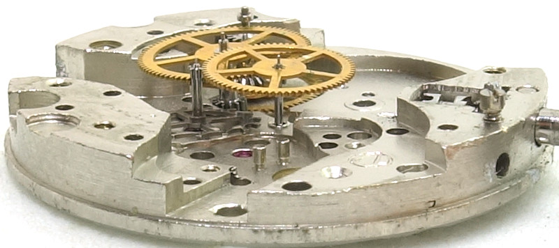 Auch wenn die Ausführung recht roh erscheint, ist sie technisch einwandfrei, und in einem Punkt sogar besagten ETA-Werken überlegen - für die Zentralsekunde gibt es zifferblattseitig sogar ein Steinlager.