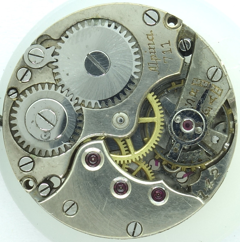 Jacob Straub, Lieferant für Alpina, fertigte auch Rohwerke unter der Marke Perla. Eines dieser Werke ist das Perla 8 3/4, welches als Alpina 711 bezeichnet wurde, und mit nur 8 3/4 Durchmesser für die damalige Zeit recht klein war.