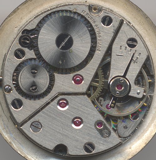 Zifferblattseitig bietet das Peseux 320 einen sehr aufgeräumten Anblick. Außer dem Kupplungsaufzug, dem großen Ausschnitt für das Federhaus, ggf. der Stoßsicherung und dem Zeigergetriebe ist nicht viel zu sehen. Einzig die Größe der Winkelhebelfeder ist vielleicht noch eine Randbemerkung wert.