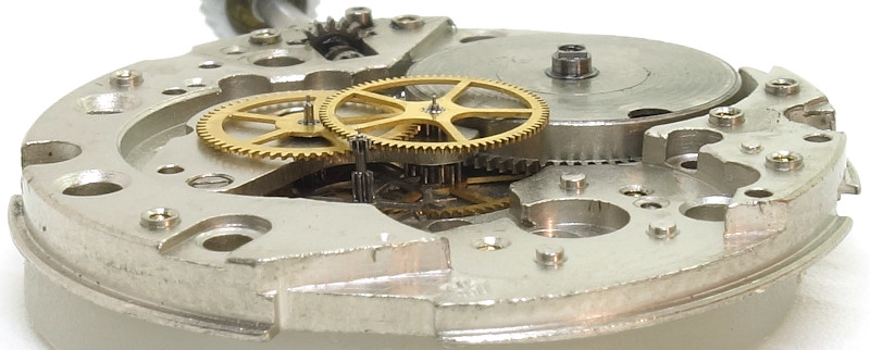 Das Poljot 2616.2H besitzt eine augenblickliche Datumsschaltung, die mit Hilfe eines Hebels und einer Nockenscheibe realisiert wird.