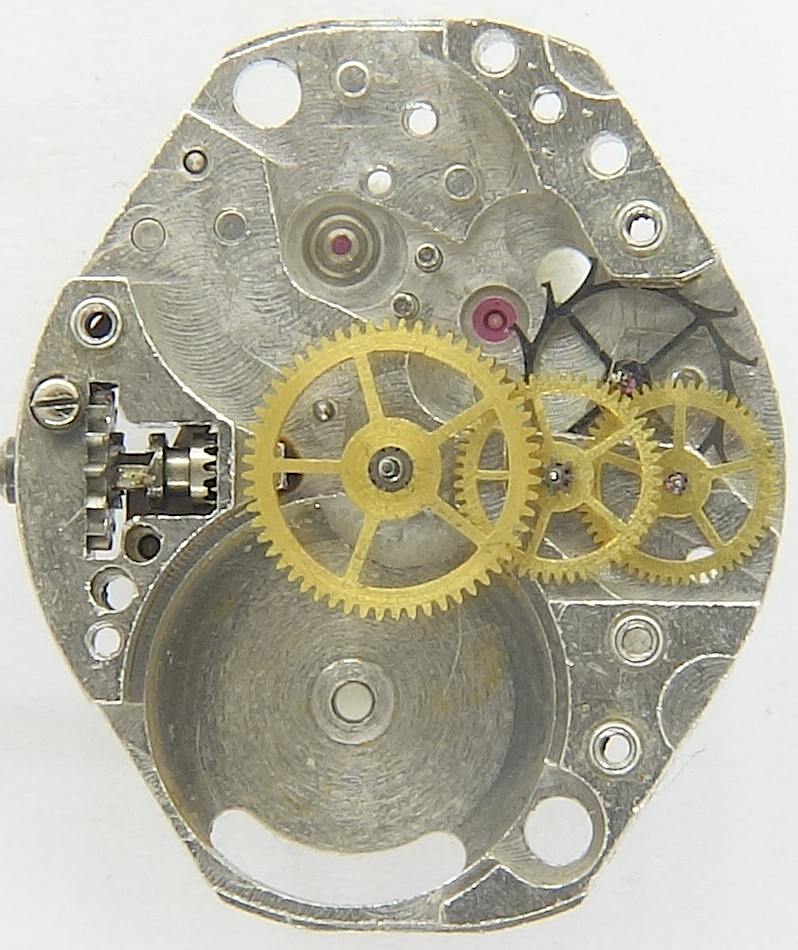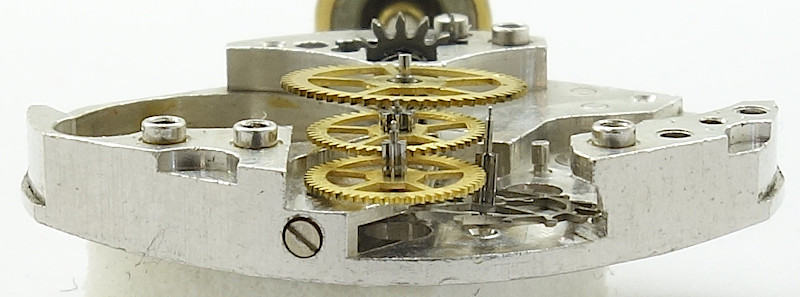 Der Räderwerksaufbau folgt dem bekannten Standard mit direkt angetriebenem, zentralen Minutenrad, gefolgt von Kleinbodenrad, Sekundenrad und dem wieder recht großen Stahl-Ankerrad.