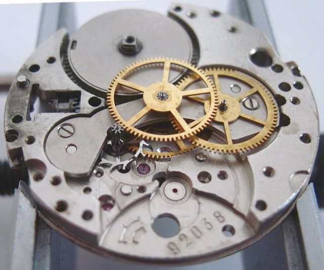 Die Werkskonstruktion ist gängiger Standard: Das Minutenrad wird zentral unter einer eigenen Brücke gelagert und ermöglicht dadurch eine, im direkten Kraftfluß liegende Zentralsekunde.