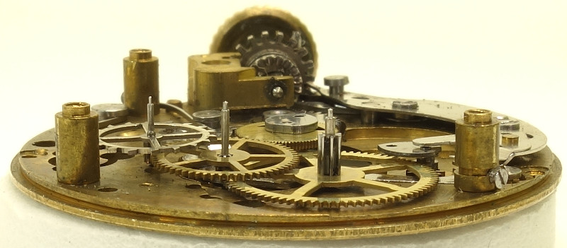 Das Werk ist ein einfaches Roskopf-Pfeilerwerk ohne Lagersteine.