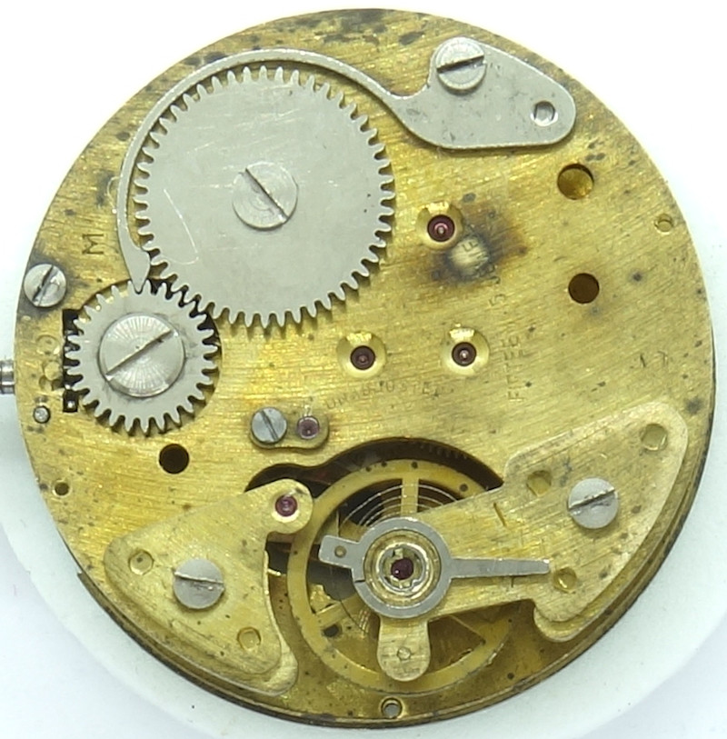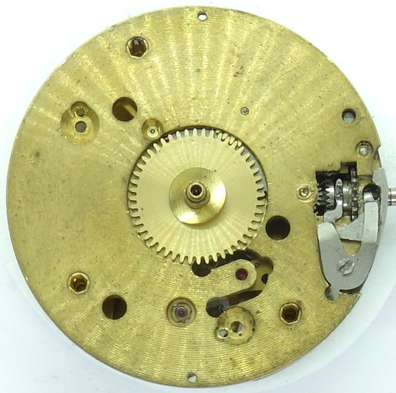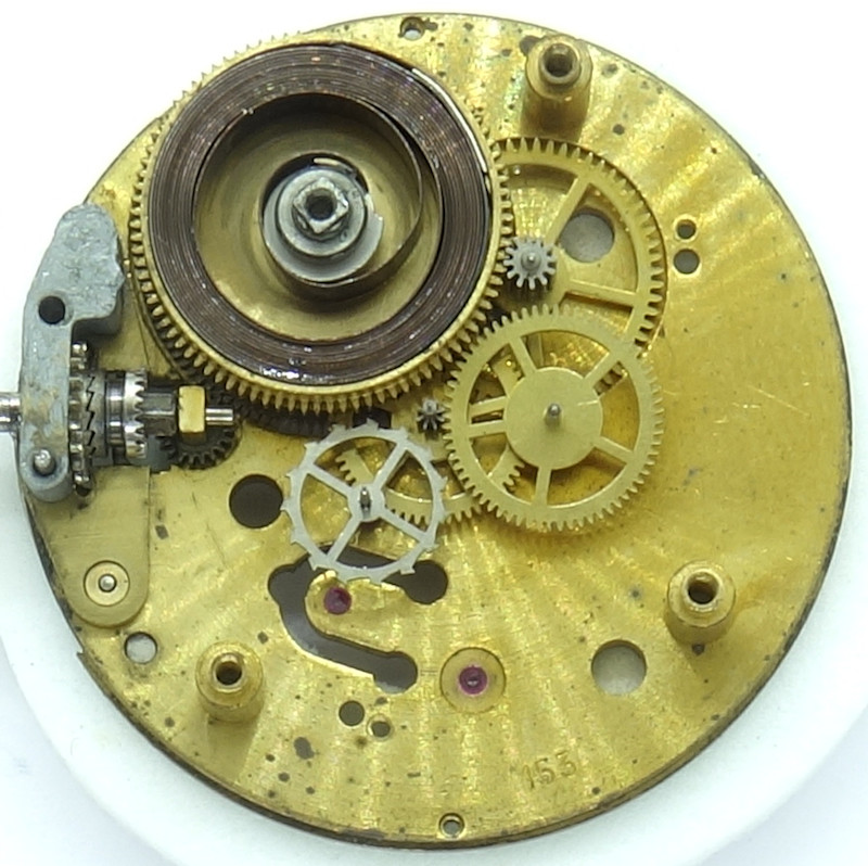 Auf der Zifferblattseite ist der Kupplungsaufzug des Rego 153 zu erkennen.