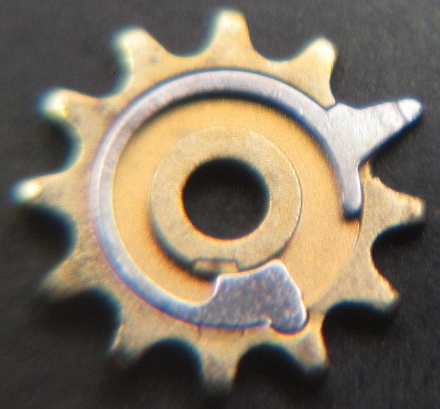 Das vorliegende Exemplar hatte einen gelösten Rotor, bei dem sich der äußere, nur gesteckte Ring von der Rotorplatte gelöst hatte. Dem Sprung im Glas nach zu urteilen, müßte dies durch einen heftigen Schlag passiert sein.