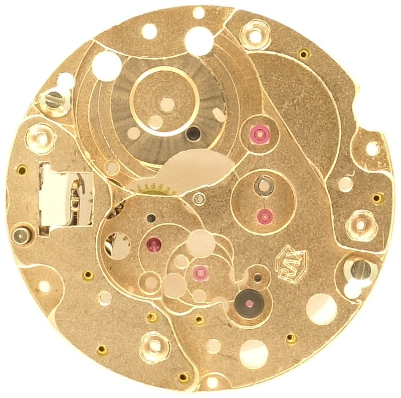 Auch wenn Ronda hauptsächlich für seine, meist besseren, Stiftankerwerke bekannt war, gab es doch auch eine Reihe von echten Palettenankerwerken, die mit der Punze “RAX” versehen waren.