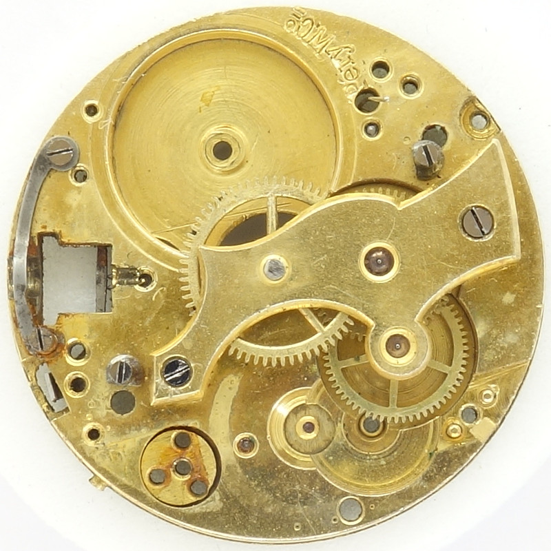 Zum Glück macht dieses 11 linige Werk eine Ausnahme, es läßt sich dank einer entsprechenden Punzierung unter der Räderwerksbrücke klar dem Hersteller Sigma (Pèry Watch Co.) zuordnen. Dass es sich jetzt wohl um das Kaliber Sigma 65 handelt, ist der Punzierung “065” auf der Zifferblattseite geschuldet.