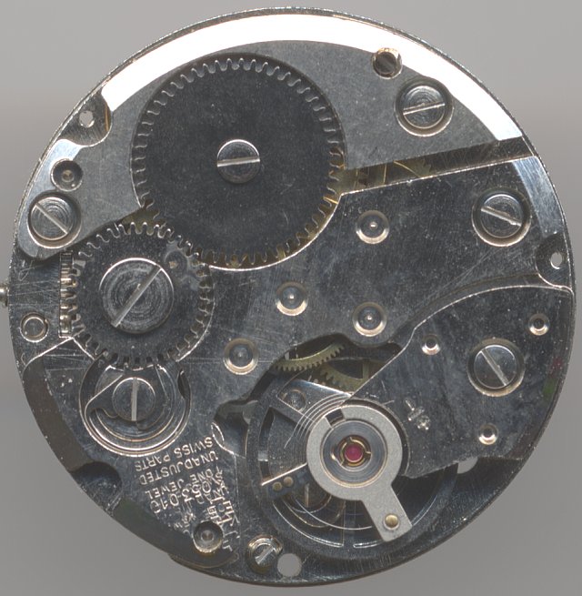 Dieses 11 1/4 linige Werk schwingt mit 21600 Halbschwingungen pro Stunde und besitzt zwei dreischenklige Stoßsicherungen, werksseitig mit einem Stein, zifferblattseitig nur mit einem Stahlplättchen als Lager der Unruhachse. Die Unruh treibt einen Stiftanker an, die Zentralsekunde ist direkt angetrieben, das Minutenrohr dagegen indirekt vom Federhaus.