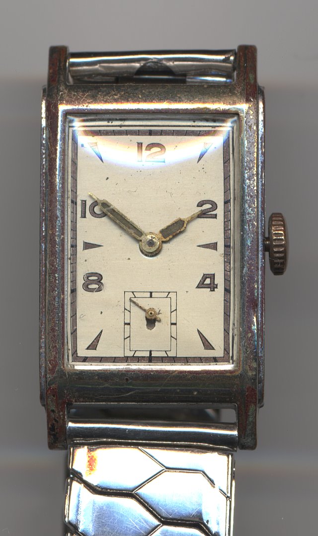 Es ist ein streng geometrisch konstruierte Formwerk, das die Größe von 8 1/4 auf 11 Linien besitzt und trotz eines wohl immensen Wasserschadens aufgrund seiner guten Verarbeitung (u.a. besitzt es 15 Steine) immer noch gut in Schuß ist.